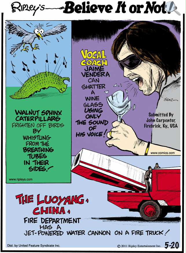 I still think this is a good caption contest source, but I feel like I'd have to pour through many more to find one that didn't have some obvious lead-in from its illustrations. As it is both entries do a great job of knocking through the expectations: AC almost took it because, in addition to the funny, she remembered to end every Ripley's sentence with an exclamation point: