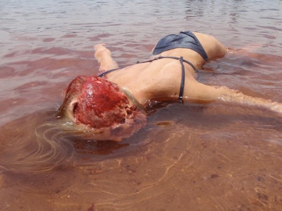 Before it came out in theaters, JPX posted a good, long clip containing footage of the movie's main set piece, which is basically MTV's Spring Break Gets Eaten By Piranhas. Except it's the R-rated version so it's a wet T-shirt contest hosted by Eli Roth. I can't find the clip, but the violence is relentless and creative, and too unabashedly pure in motive to be called gratuitous. It's not all fish-violence either, there's a healthy helping of boat violence. One particular dickhead jock decides to flee the scene by jumping from a large boat to a much smaller boat (cough cough -- stupid!) and ploughs through a thick crowd of beleagured swimmers, until a girl's hair gets tangled in his propeller. It's sick. It's like this movie donned brass knuckles made of live piranhas and punched my brain right in the gore-zone.