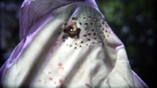 They drive off but end up running out of gas so the driver ventures off to find a gas station. Now as if the flesh-eating zombies shuffling about weren’t trouble enough for them, the driver on his quest wanders into the lair of a mace wielding, burqa wearing psycho slasher. These kids are screwed!