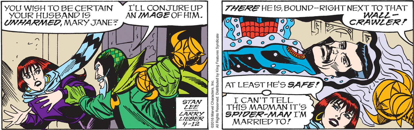 Why does it matter if she is married to Dr. Strange or Spider-Man, what difference would it make to Xandu? I like how cozy Strange and Spidy look floating in that energy gel next to each other.