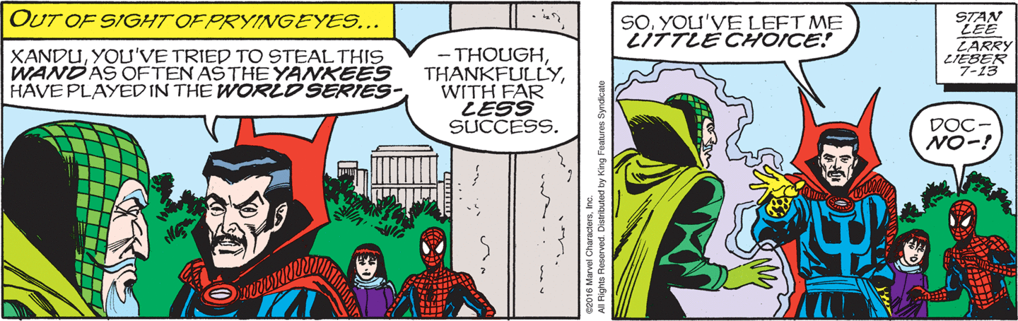 Daily Spider-Man! Wow. The face in panel one, the pose in panel two, the awful baseball joke... I just hate Doctor Strange so much right now